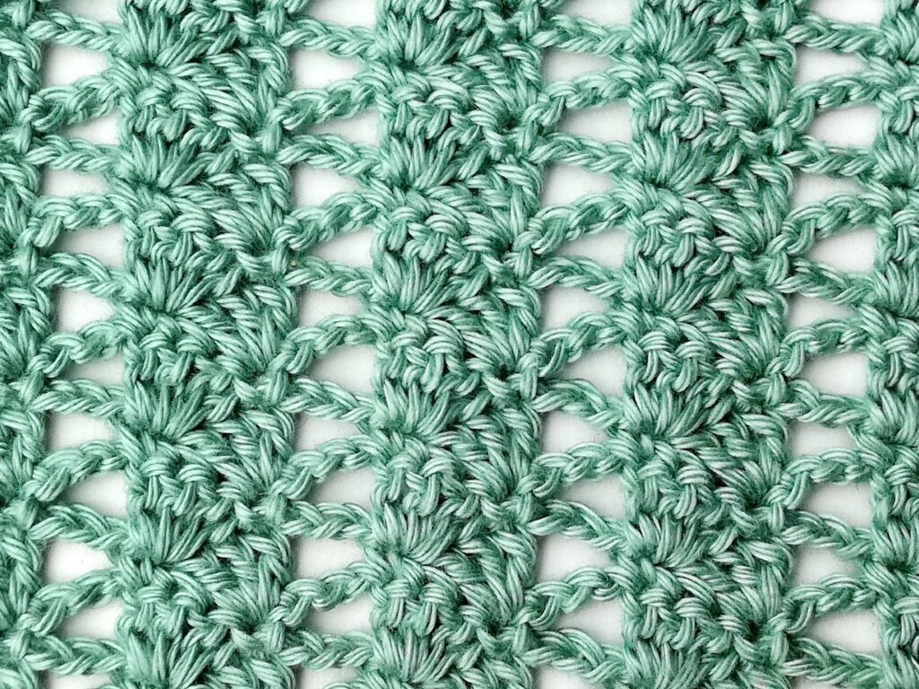For this crochet stitch, you should know how to make a single crochet and a double crochet. The aqueduct stitch is a repeat of four rows. The fabric turns out light and lacy.