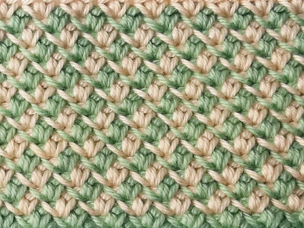 For this crochet stitch you should know how to make a single crochet. The tutorial shows how to make a center single crochet. The two single crochet stitch looks great when you use more than one color.