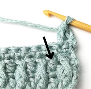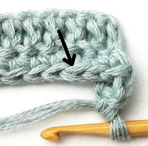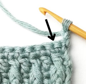 8. Chain two and turn your work around. Chain two counts as a stitch.