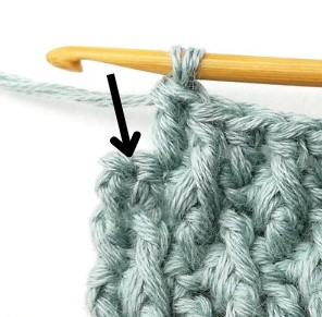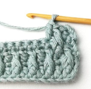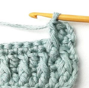 9. Next you will make a front post double crochet working in the double crochet two rows below. So, yarn over.