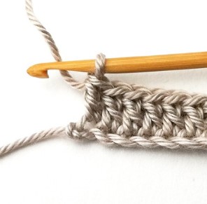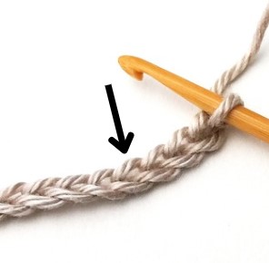 6. Chain one and turn your work around. Chain one does not count as a stitch. You will make a single crochet in between the first two stitches.