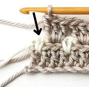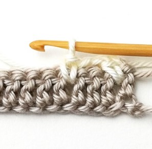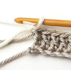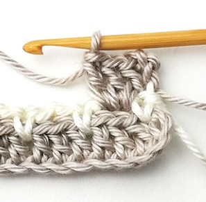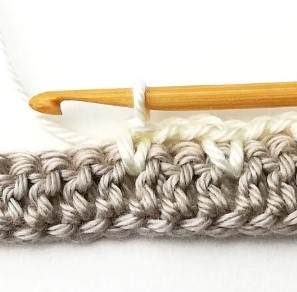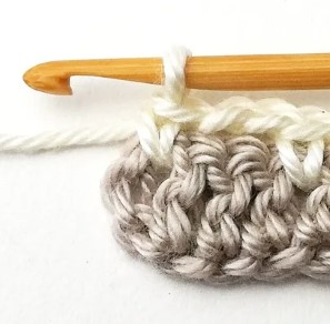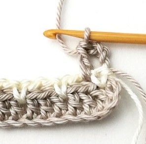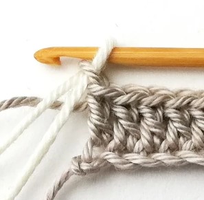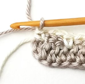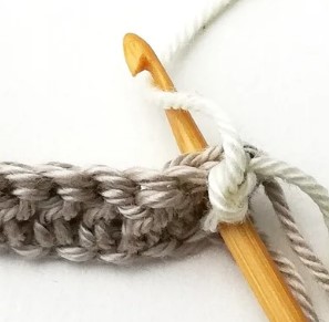 4. At the end of the row you have to change yarn color to white. So, chain one with the white yarn.