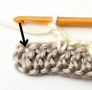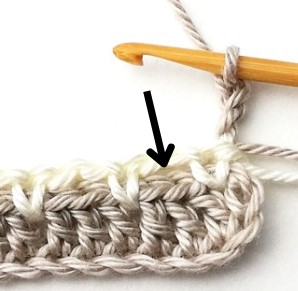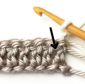 7. So, insert your hook in between the first two double crochets and yarn over.