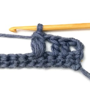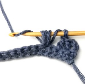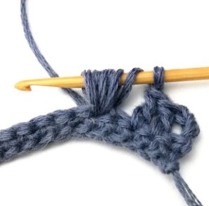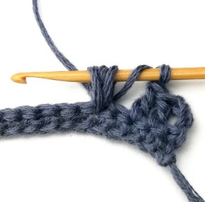 22. Chain one, skip one stitch and make three double crochets in the next three stitches.