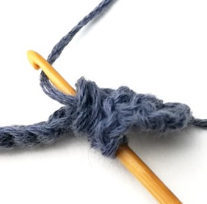 18. Yarn over and pull the yarn through both loops. You have just made a puff stitch!