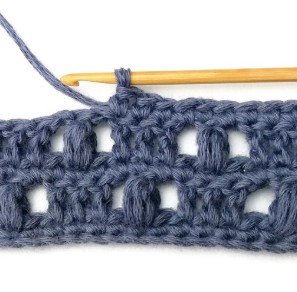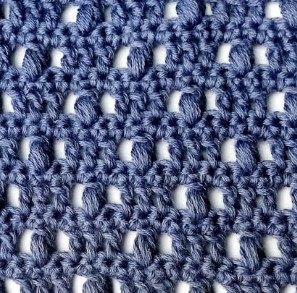 In this step-by-step crochet stitch tutorial I show how to make the blueberry stitch. This crochet stitch tutorial includes detailed photo instructions. For this crochet stitch you should know how to make a single crochet and a double crochet. The tutorial below shows how to make a puff stitch. The blueberry stitch is a repeat of four rows. The fabric turns out light.