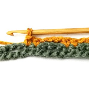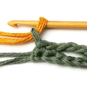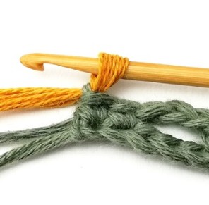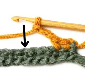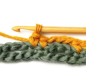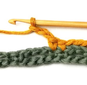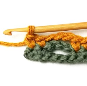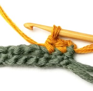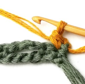 9. Change yarn color to curry. So, chain one with curry yarn.