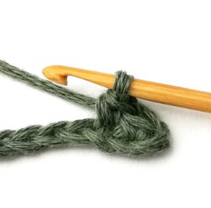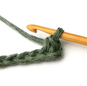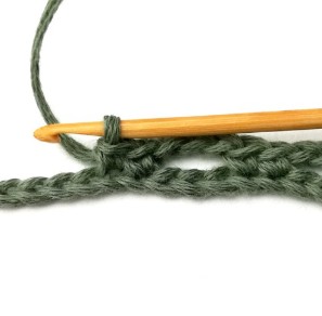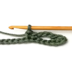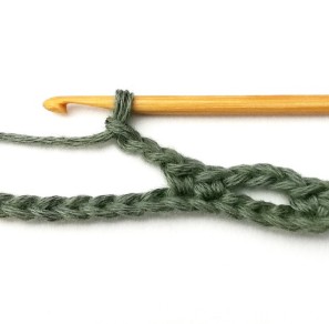 1. Start by chaining a multiple of five plus three with eucalyptus yarn. You will start working in the second chain from your hook.