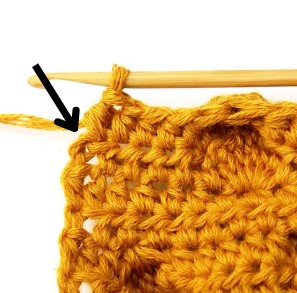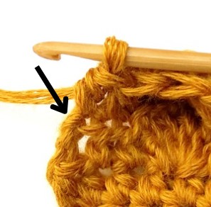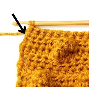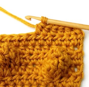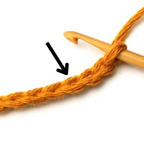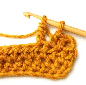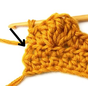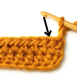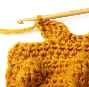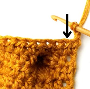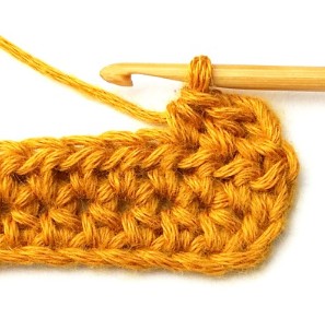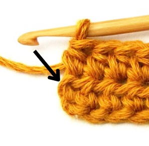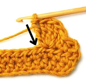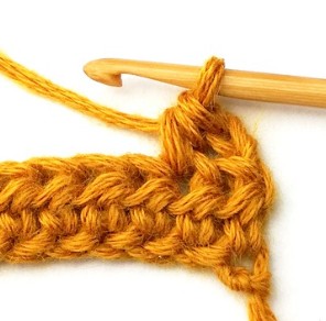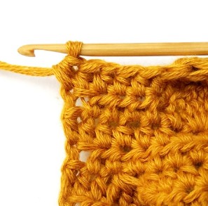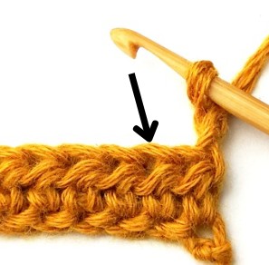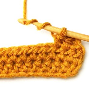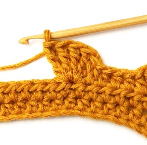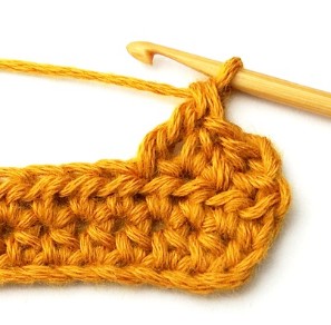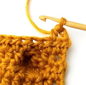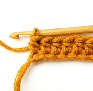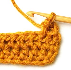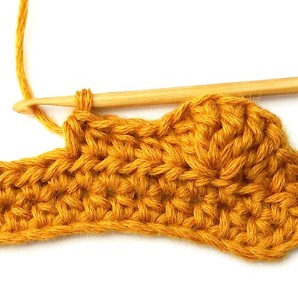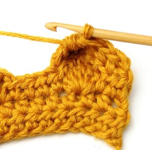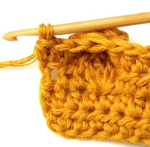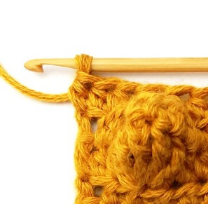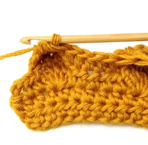 4. Chain two and turn your work around. Chain two counts as a stitch.