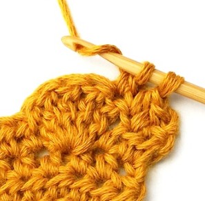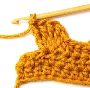 13. Yarn over and pull the yarn through the first two loops. Now you have three loops on your hook.