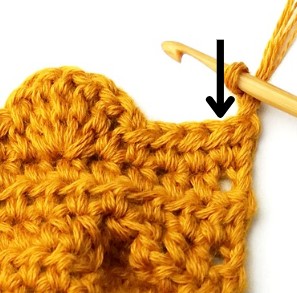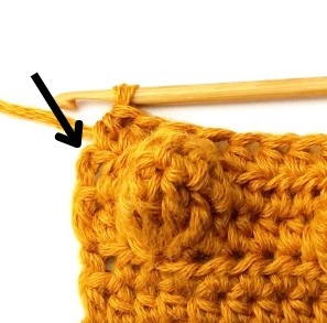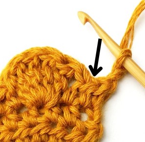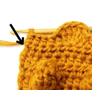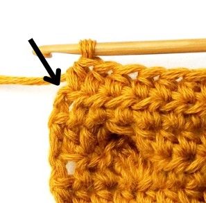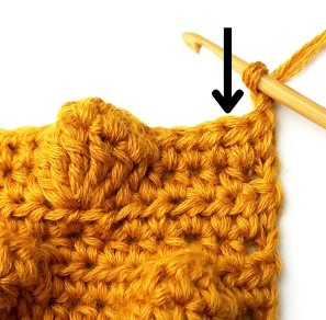 8. Chain two and turn your work around. Chain two counts as a stitch.