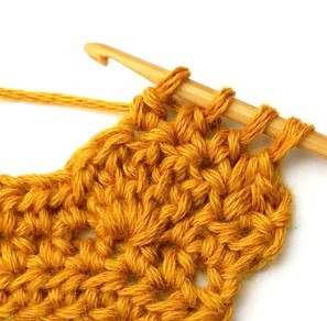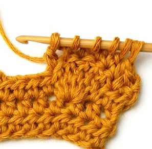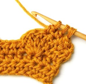 15. Yarn over and pull the yarn through both loops. You have just made a treble crochet.