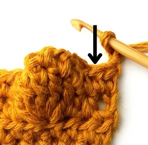 28. Insert your hook in the next stitch, yarn over and pull the yarn through. Three loops on your hook.