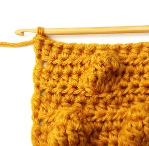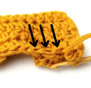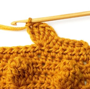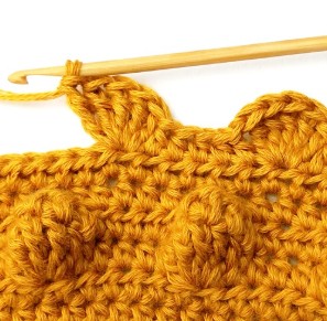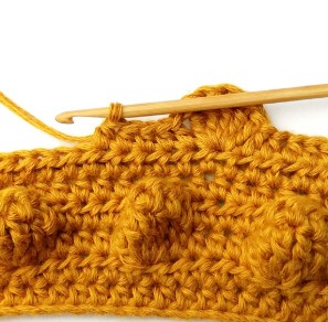 19. Then repeat. Make five half double crochets in the next five stitches.