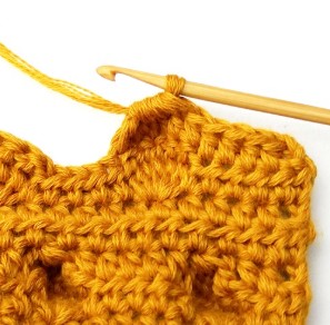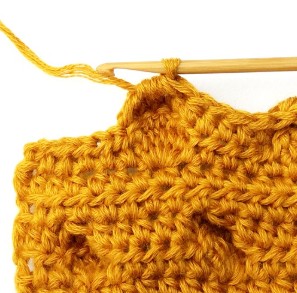 24. Chain two and turn your work around. Chain two counts as a stitch.
