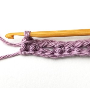 9. Chain three and turn your work around. Chain three counts as a stitch.