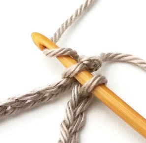 10. Pull the yarn through the first loop on your hook. Now you have two loops on your hook.