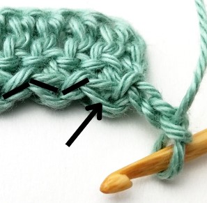 5. Chain one and turn your work around. Chain one does not count as a stitch.
