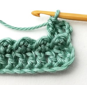 14. Chain three and turn your work around. Chain three counts as a stitch.