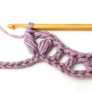 1. Start by chaining a multiple of twelve plus three. You will start working in the fifth chain from your hook.