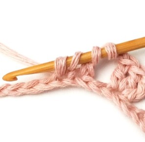 15. Yarn over and pull the yarn through all four loops. You have just made a double crochet three together!