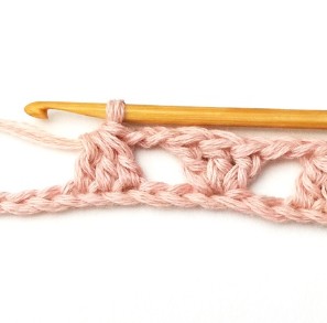 20. Chain two, skip two stitches and make three double crochets in the next stitch.