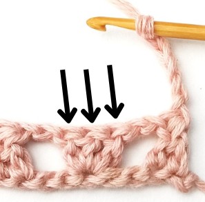 27. Make three double crochets in the next three double crochets.
