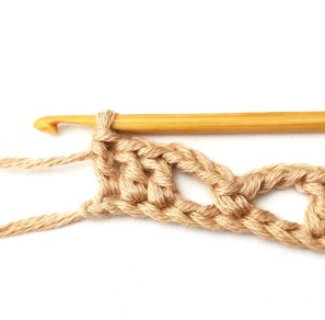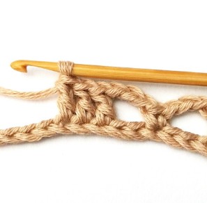 22. Chain three and turn your work around. Chain three counts as a stitch.