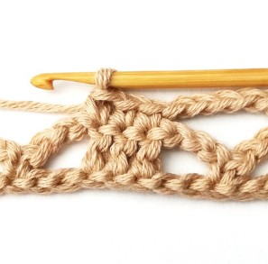 25. Chain three and make a single crochet in the chain five space.