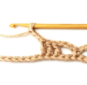 1. Start by chaining a multiple of eight plus five. You will start working in the fourth chain from your hook.