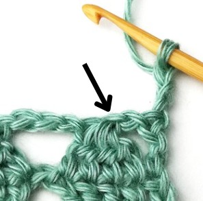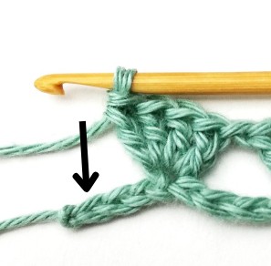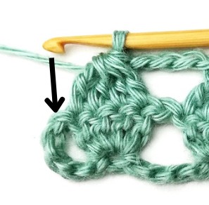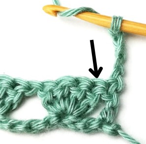 8. Then skip two stitches and make a double crochet in the last stitch.