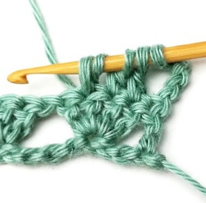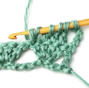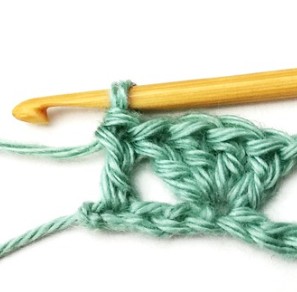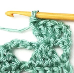30. Chain three and turn your work around. Chain three counts as a stitch.
