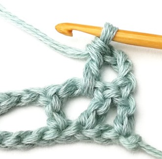10. Chain three and turn your work around. Chain three counts as a stitch.