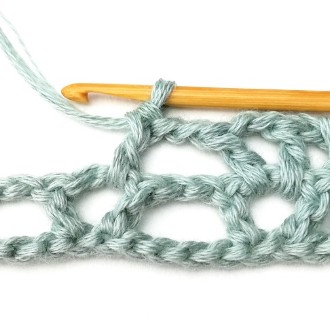 15. Then repeat. Chain two, skip the next chain two space and make a double crochet in the next one.