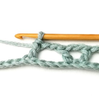 6. Then repeat. Chain two, skip four stitches and make a double crochet in the next stitch.