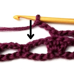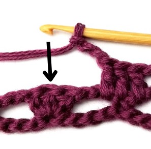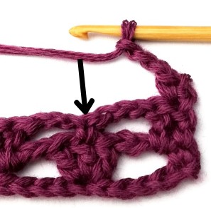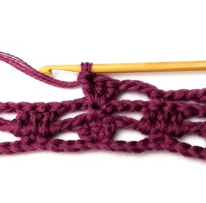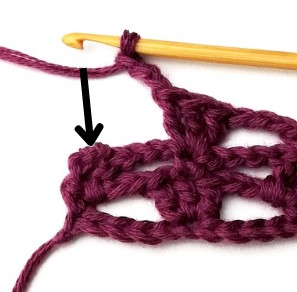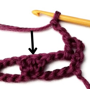 13. Chain three and turn your work around. Chain three counts as a stitch.
