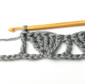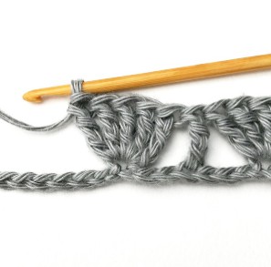 29. Skip two stitches and make a treble crochet in the next stitch.