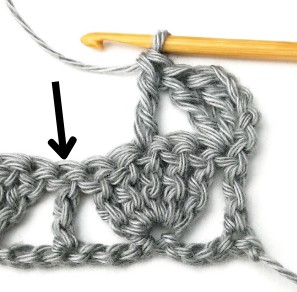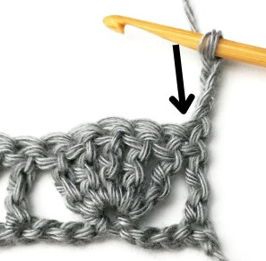 24. Skip two stitches and make a treble crochet in the next stitch.