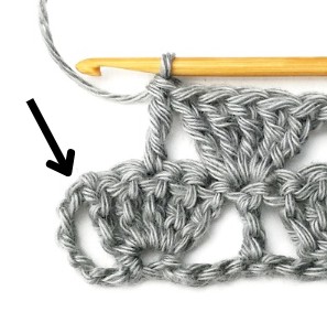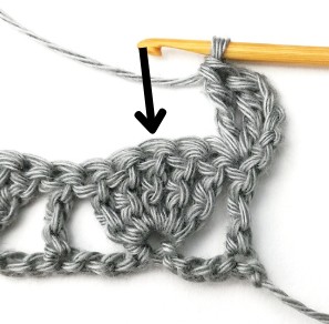 14. Skip two stitches and make a treble crochet in the next stitch.