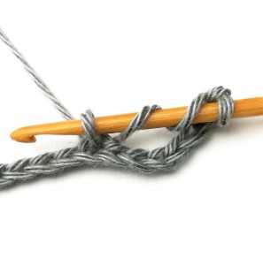 8. Pull the yarn through the first two loops. Now you have two loops on your hook.