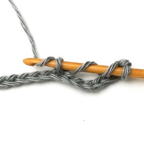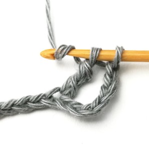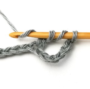 6. Pull the yarn through the first two loops. Now you have three loops on your hook.