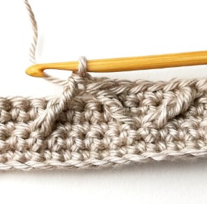 26. Next you will skip two stitches of this row that are hiding behind the front post treble crochets and work in the next stitch.