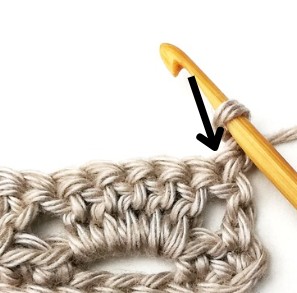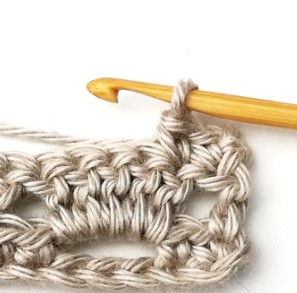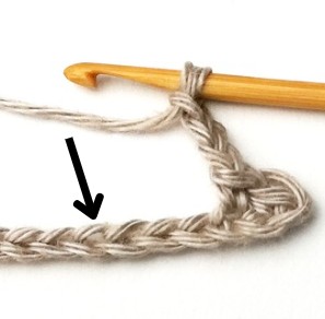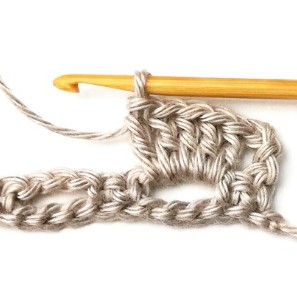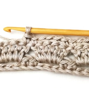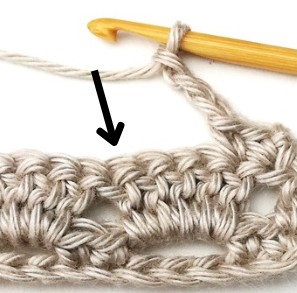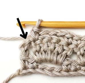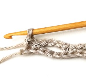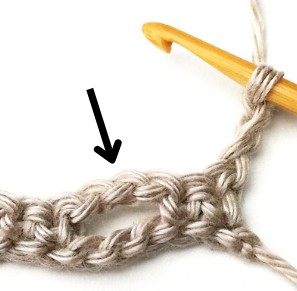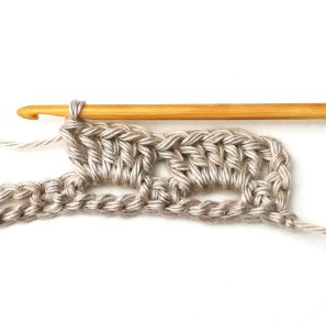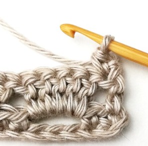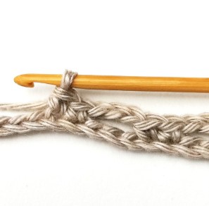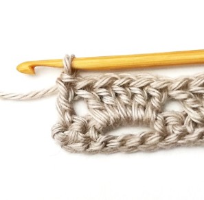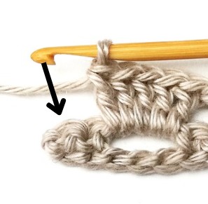 8. Chain three and turn your work around. Chain three counts as a stitch.