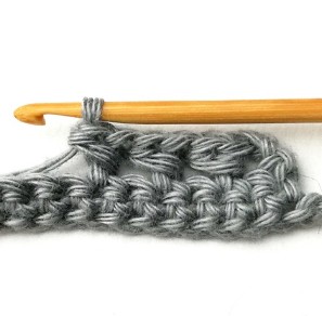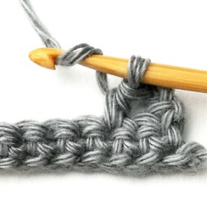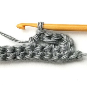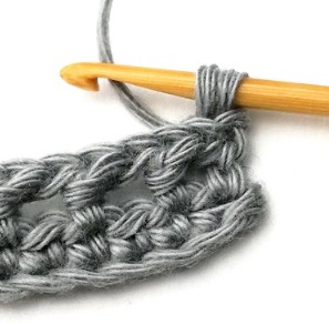 4. Chain two and turn your work around. Chain two counts as a stitch.