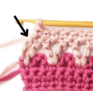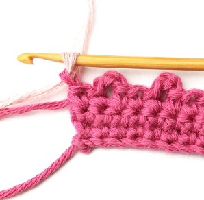 45. Then make the last single crochet in the turning chain. For the rest of the pattern repeat rows 2-5 changing yarn color every two rows.