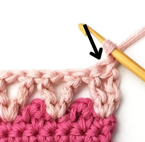 21. Insert your hook in the first stitch and yarn over.