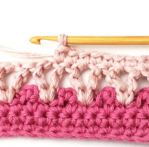 Photo instructions for the picot and large V stitch