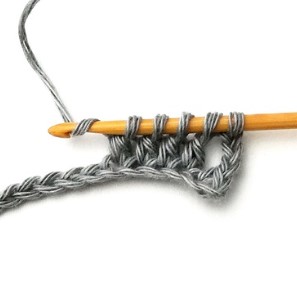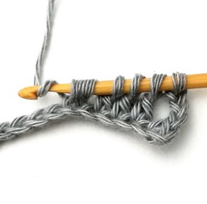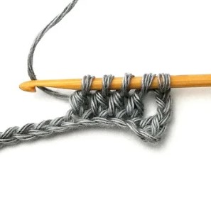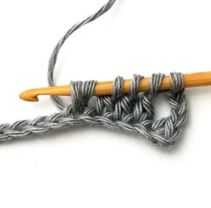 6. Pull the yarn through. Now you have three loops on your hook.