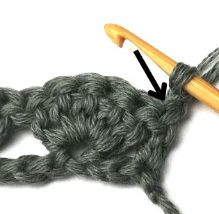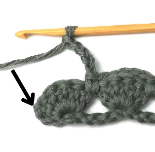 11. Then skip five double crochets and make a single crochet in between the two shells of the previous row.