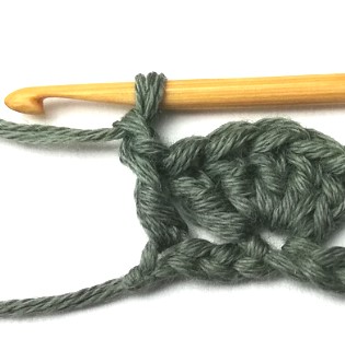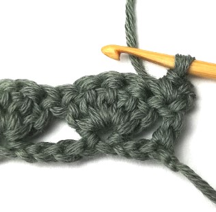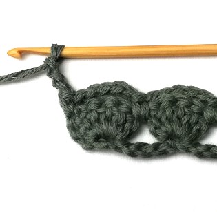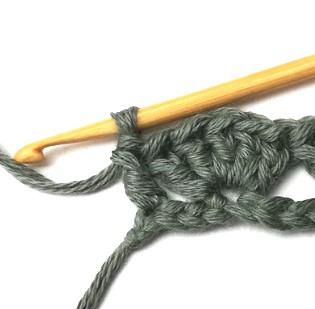 3. Then make four more double crochets in the same stitch. You have just made the first shell!